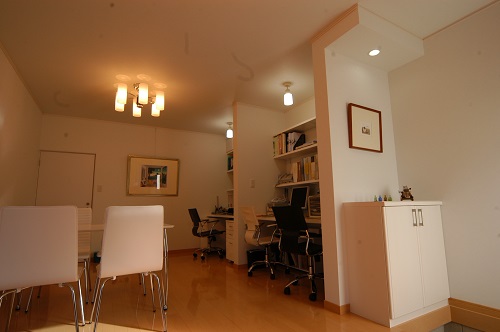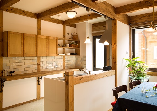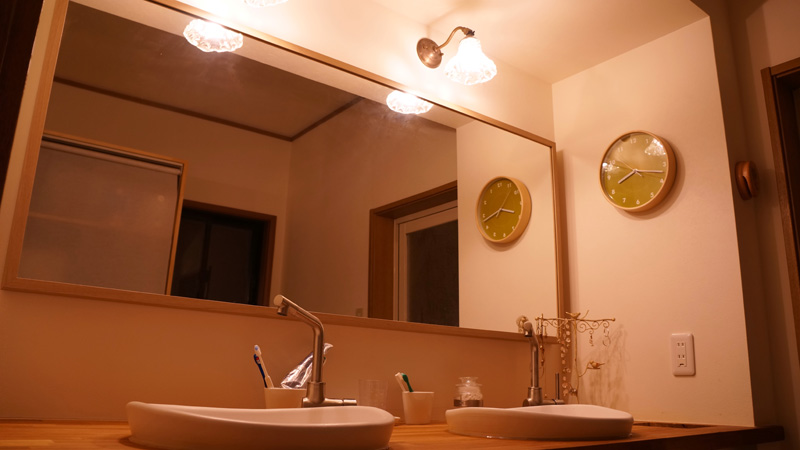 洗面ボウルが2つ並んだ造りつけ洗面台。